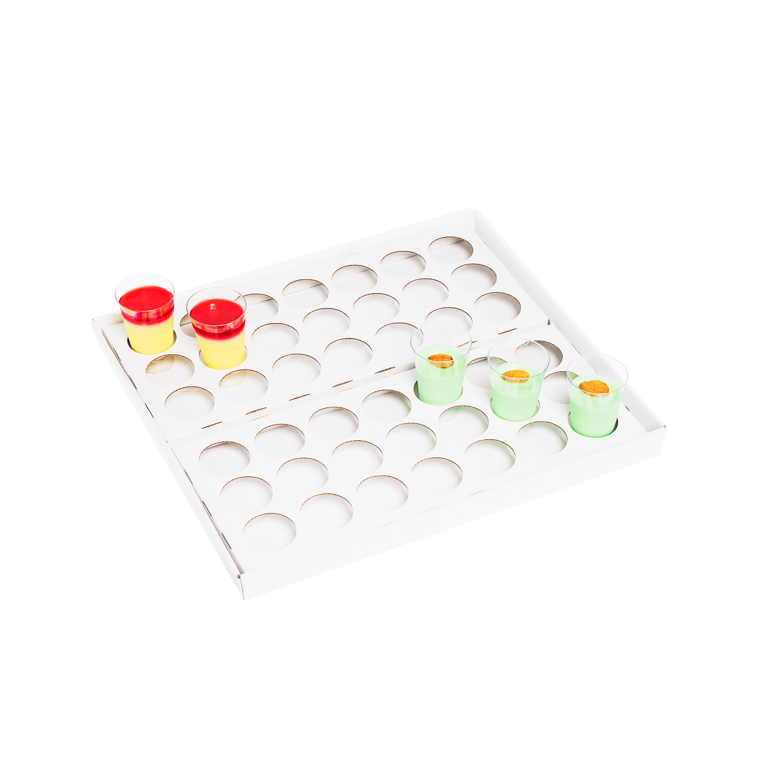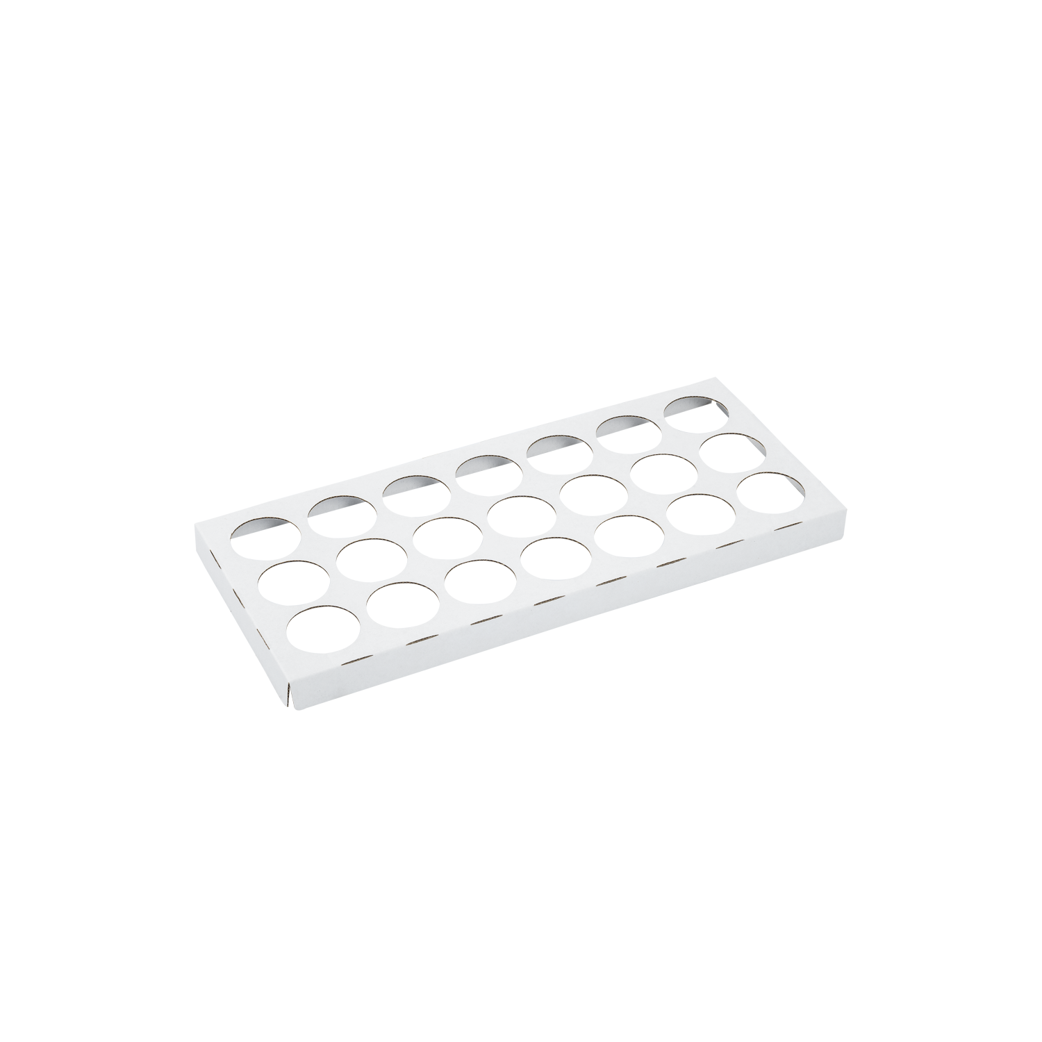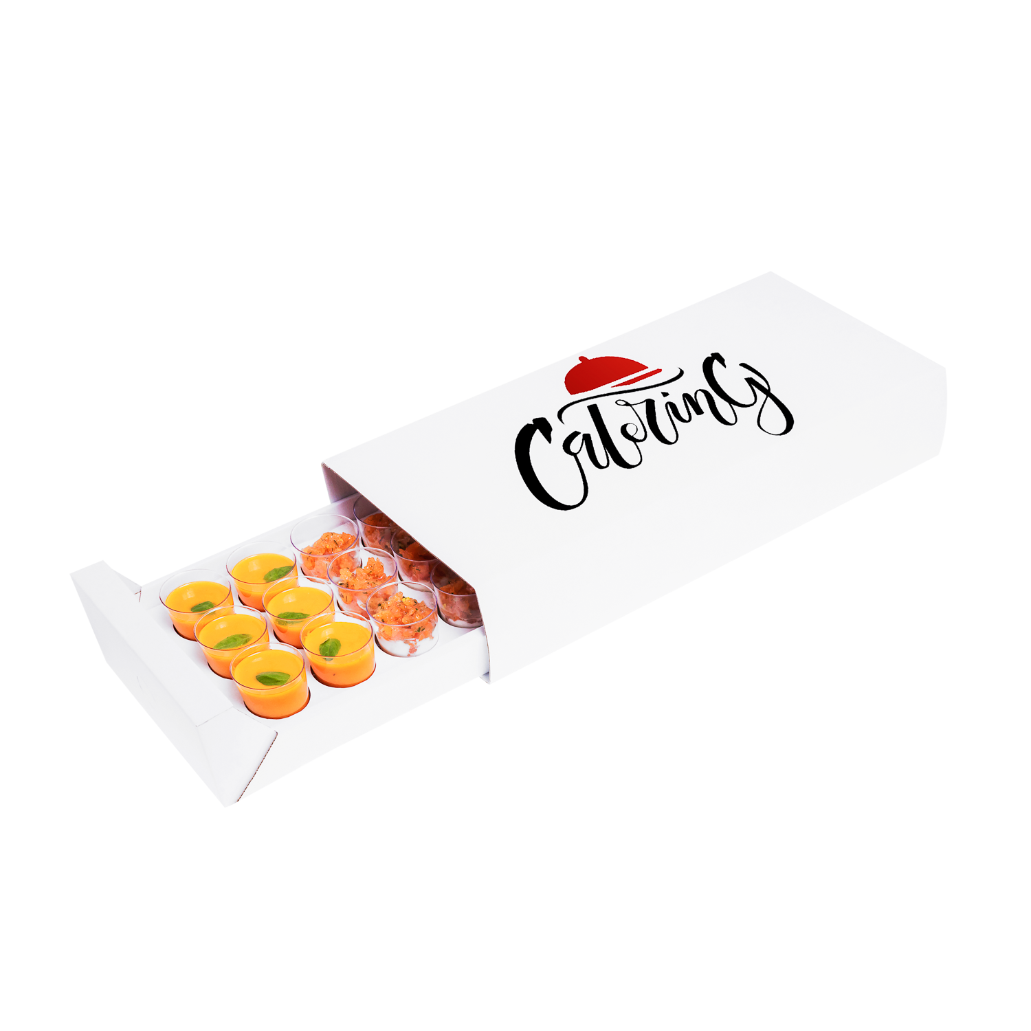Cale verrines fabriqué en France et issu de matière recyclée entièrement recyclable. Cet indispensable pour le transport de vos verrines vous permet de proposer un coffret 42 verrines ou un coffret mixte verrines / pièces cocktail.