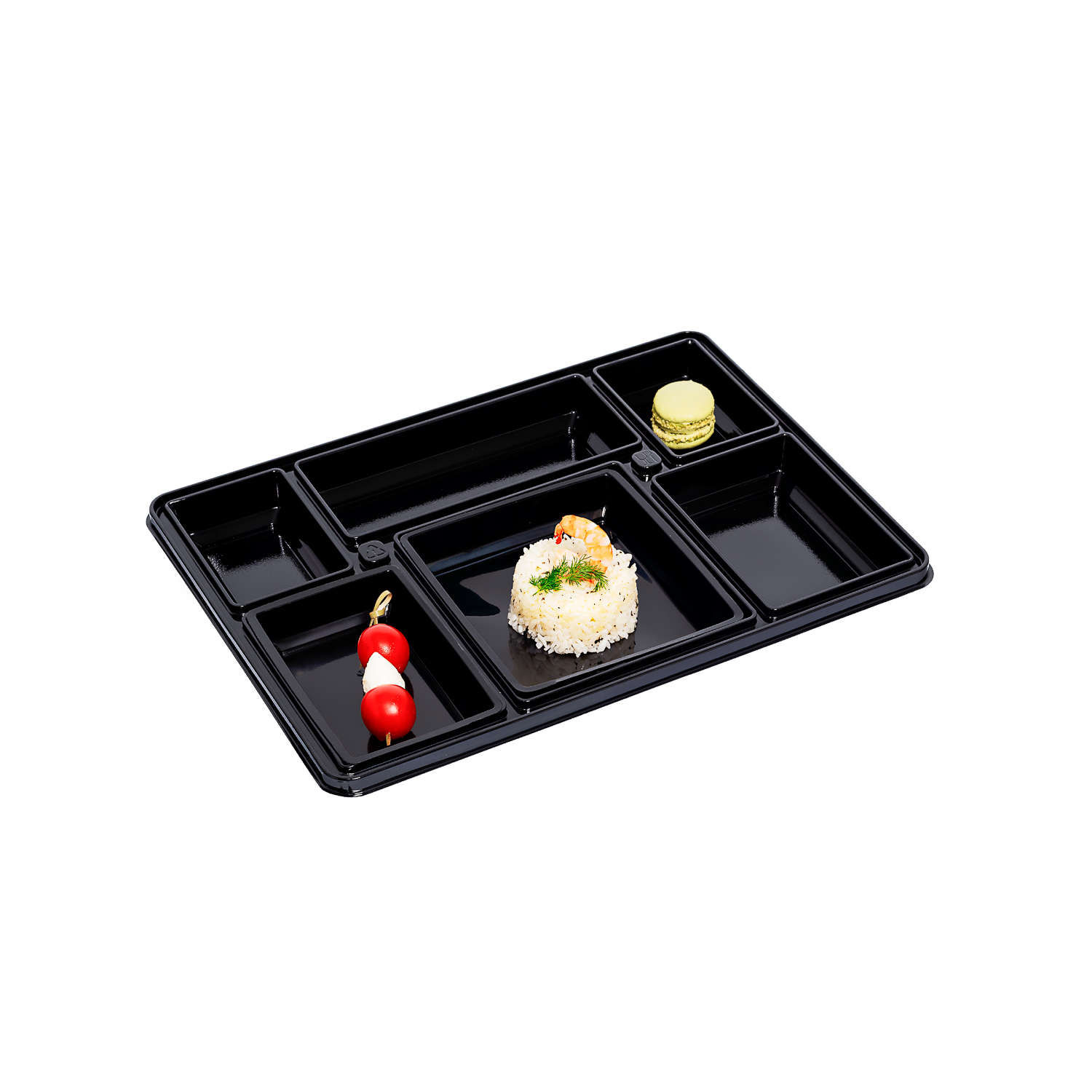 Ce plateau-repas 6 alvéoles est un véritable atout combinant une facilité d'utilisation tout en valorisant votre dressage. Compact et léger, il s'empile parfaitement pour faciliter toutes vos livraisons.