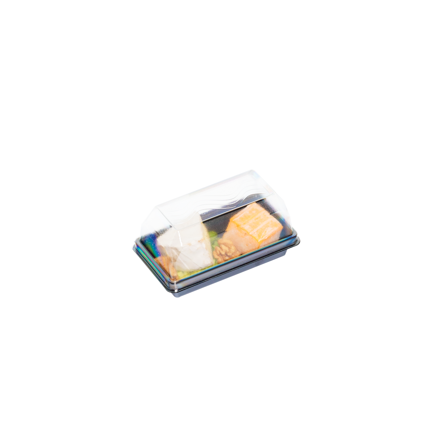 Sa couleur noire, sa brillance et son visuel épuré mettront en valeur votre sélection de fromage dans vos menus plateaux-repas traiteur. Associée à l'ensemble de la gamme de vaisselle à usage unique OSI, elle apportera une certaine harmonie à la mise en avant de votre savoir-faire.