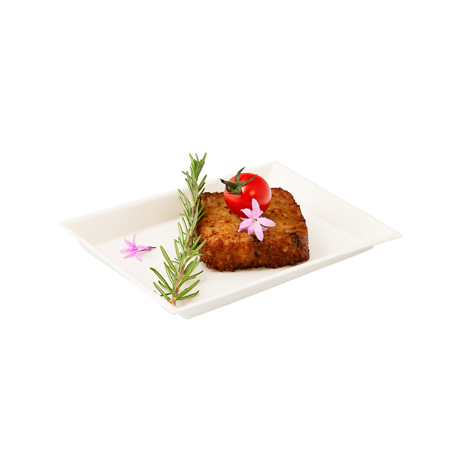 Assiette à usage unique en pulpe de canne à sucre. Produit compostable et biodégradable.