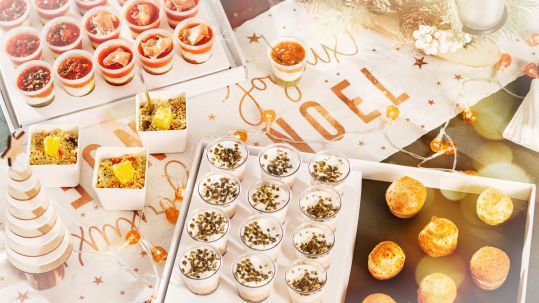 Plateaux traiteur, cales verrines et coffrets pour les fêtes, retrouvez notre sélection pour les fêtes 2025.